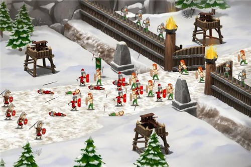 1,游戏中的界面非常简单,通过观看能够快速的了解内容,提前用弓弩攻击敌人,等敌人停住后用抛石机继续攻击。
