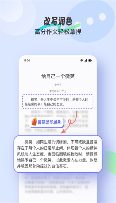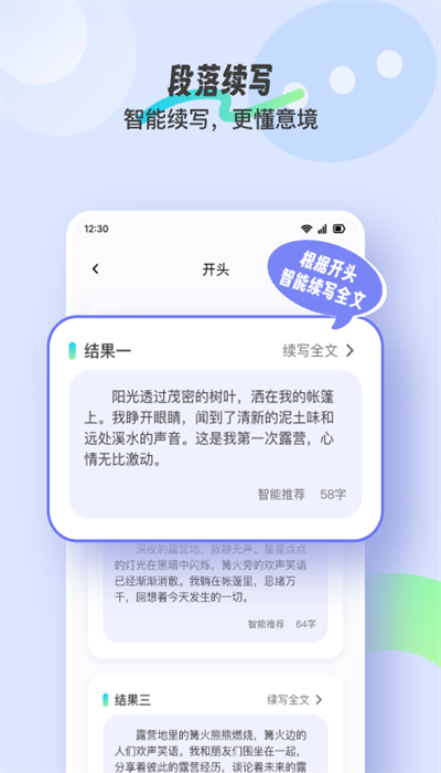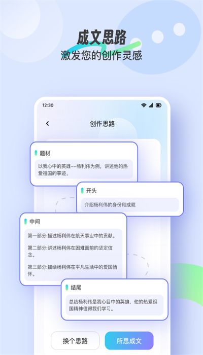 1.拥有智能写作助手,提供相关素材,帮助用户打开思路,创作更丰富多样的作文。
