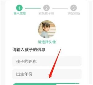 打开青柠守护家长端绑定新设备页面,输入信息,点击下一步即可。