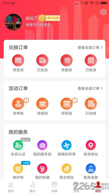 3、内置积分商城,在这个商城之中有着丰富的礼品可以使用积分免费兑换;