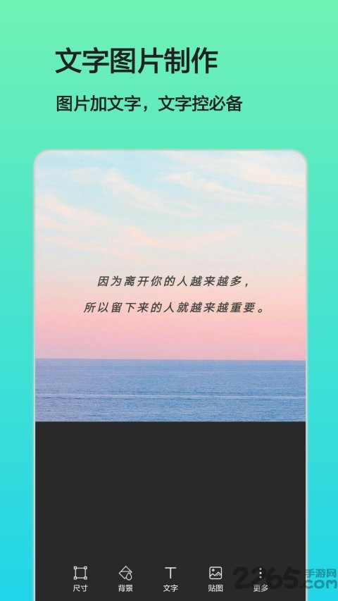 朋友圈、微博发心情找不到合适的文字图片?厌倦千篇一律,撞图没有新意?有了文字图片制作app,不用网上苦苦搜索,最能彰显你品味与个性的文字图,自己就能轻松搞定。
