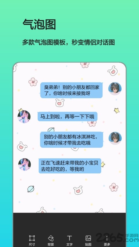 提供多种气泡图模版,制作情侣甜蜜对话图,秀恩爱党不容错过的App装备。