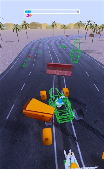 1.在这款游戏中,玩家通过控制残缺的赛车的方式,驾驶着赛车多人竞速的方式进行挑战。