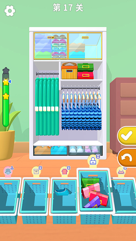 1.海量关卡任务,各种玩法尝试,自由进行尝试,享受收纳的乐趣;