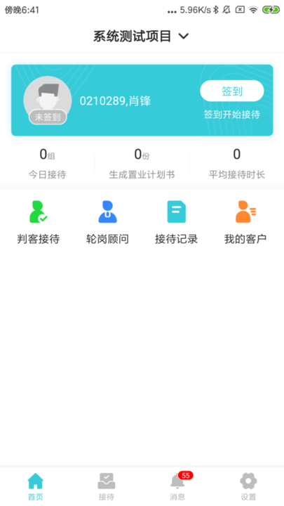 - 拥有多样的服务功能应用图标,这些图标涵盖了判客接待、接待记录以及我的客户等管理功能;