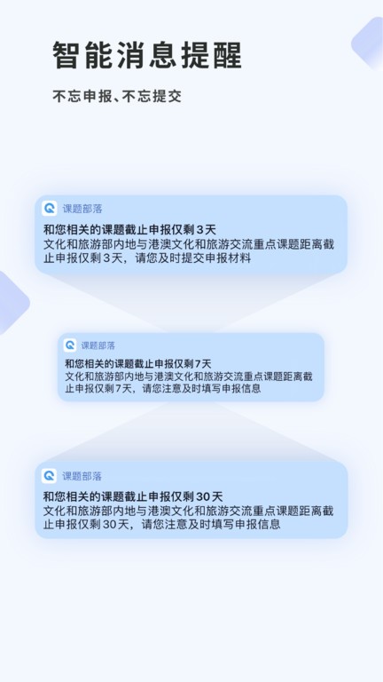 课题部落是一个适用于高校以及企业的科研申报辅助平台,支持科研基金个性化推荐、个性化年度计划、科研基金数据聚合、智能消息提醒、学术成果自动采集等多种功能.