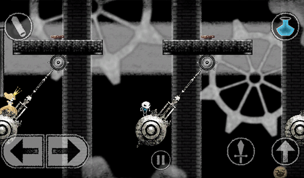 4、玩家可以在小骷髅和王子之间切换,使用不同的能力来解谜。