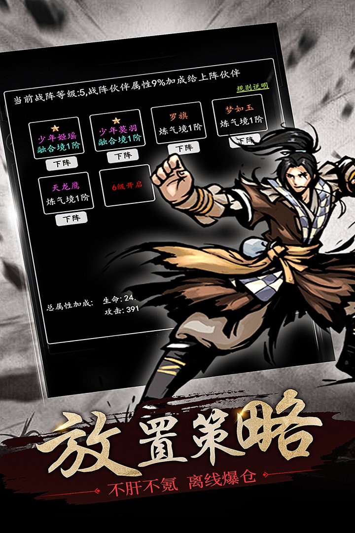 修仙大作战作为一款剧情向的纯文字放置手游,拥有非常浓厚的水墨风格,新奇的玩法,成长方式比较完善,不同的模式都会使游戏者提高自己的实力,给游戏者带来了不一样的乐趣。同时,该手游拥有非常庞大的手游世界观,超多的冒险剧情,手游模式多样,在手游里游戏者在探索上古遗迹的时候还能够和众多游戏者一起决战三界之巅,尝试激情四射的打斗快感。在这当中将会让你观看到这个世界不同的一面,还有更多奇幻冒险之旅,经典的修仙职业可以选择,自由的挂机战斗系统,轻松解放双手,震屏动作连击,开启浪漫修仙尝试,感兴趣的朋友赶紧来下载试试吧。