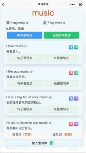 软件内的单词都有英美两种不同的发音教学,能够满足不同游戏者的学习需求