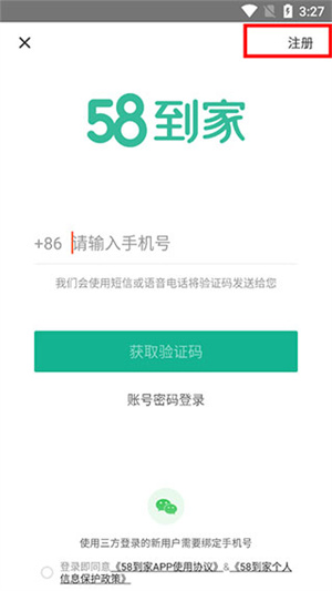 1、先从来haolingcc下载58到家,下载完成后,大家需要使用实名验证的手机号码进行登录,没有登录过的小伙伴需要先点击右上角的注册按钮进行注册。