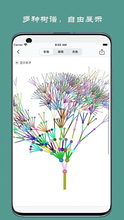 族谱导出高清图。可以把您和家人共同建造的家族树分享给微信好友,或者生成高清大图保存。