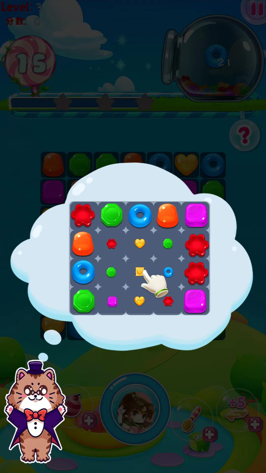 2、糖果炮弹消消消需要匹配相同的块才能完成消除,才能顺利通关。