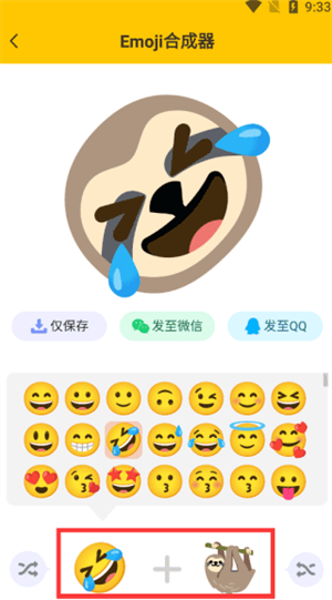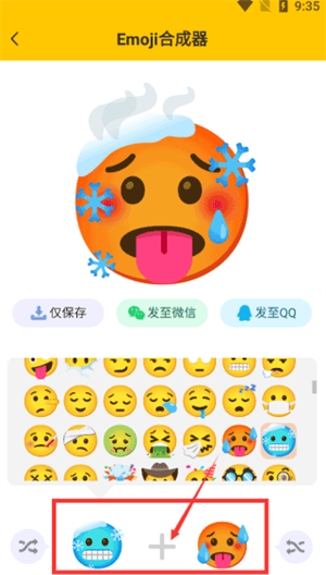 2、可以看到有非常多的Emoji,可以让2个Emoji合成,点击下方的2个Emoji就能合成出不同的表情啦!