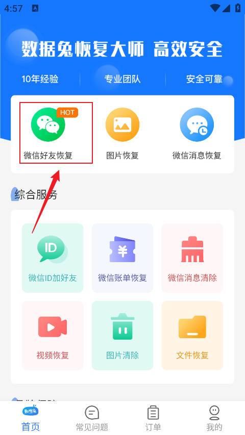 1、首先点击首页的微信好友恢复