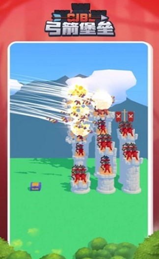 1、在游戏中你要合理的利用弓箭击败敌人及其城堡,在高塔上有许多弓箭手供你差遣。你要合理的利用这座高塔的兵力夺取敌人的城堡,快来开启你的对决吧!