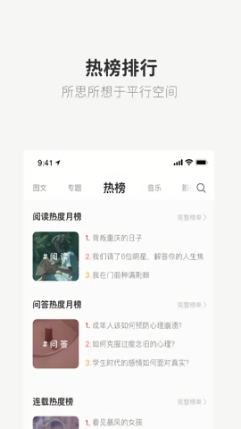 还有热榜排行供游戏者来选择想看的去点击,里面拥有着超多所思所想于平行空间