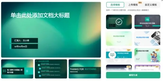 从PPT大纲生成PPT之前,可从模板库中选择模板,这里既有免费模板,也有会员专属的PPT模板,选定模板之后,百度aippt就会快速生成一份精美的PPT文档。