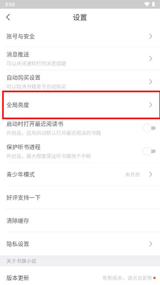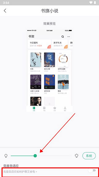 4、在全局亮度页面可以手动调节系统亮度,同时可以开启下面的“亮度自适应”功能,开关打开即可,它的功能就是护眼和省电模式