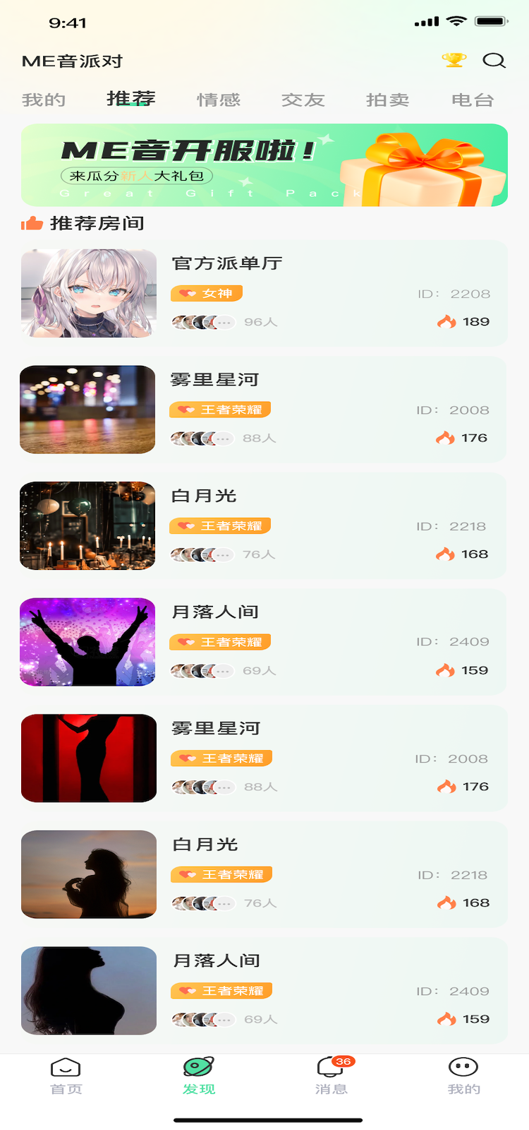 ME音派对APP是一款实现用户同城交友互动的手机软件,在线语音聊天,极具方便流畅,用户可以享受没有任何限制的交友互动体验,各类数据匹配,绝对安全靠谱!