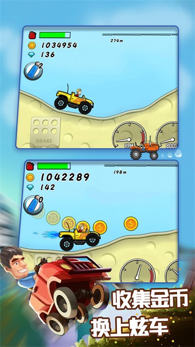 登山越野飙车手游是越野赛车类的手游,在手游里游戏者将会驾驶车辆在不同的赛道上狂飙,收集途中遇到的金币,在颠簸的路上集中精力行驶,展现各种极限操作快速的到达终点,喜欢的小伙伴快来下载试试吧。