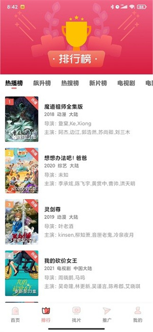 4、通过下方菜单栏能够进入软件的影视剧资源排行榜,丰富的最新最热影视剧资源都能够看到。
