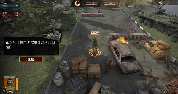 1.首先要清除路面上的障碍物,点击战士,所有的战士每回合有两次操作