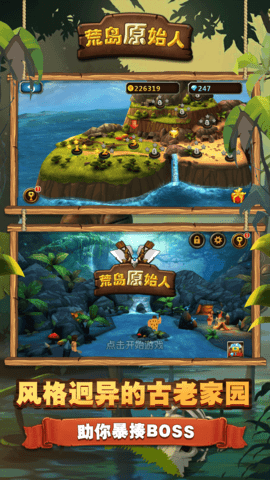 荒岛原始人作为一款原始人岛屿生存模拟冒险类型的手游,在游戏中你能选择最独特的原始人角色在游戏里展开精彩的生存考验,危险的地图中拥有更加精彩的挑战和刺激的副本等级你闯荡,你会在新的地点中开启更有趣的玩法,并逐渐的升级自身的能力让你能打造更多工具与武器装备。
