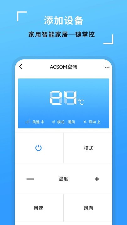 ·轻松的调空调的温度,风速,风向等,让用户轻松的调整空调