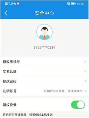 4、注册成功后再返回来登录,在安全中心先把指纹登录打开,即可使用指纹一键登录,当然输入你刚刚设置的手机号和密码也可以进行登录。