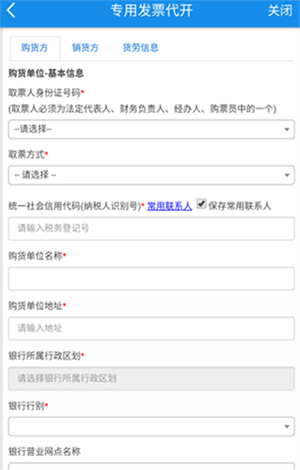 第二步:点击【增值税专用发票代开申请】填写购货方、销货方、劳务信息;