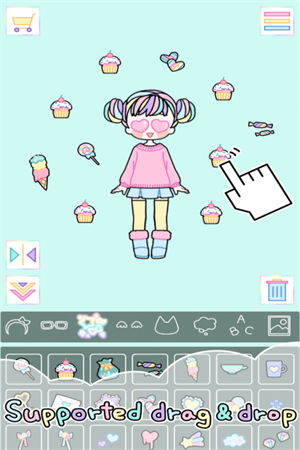 提供拖放UI,可以自由放置衣服和物品。但是,拖放并不支持所有项目。