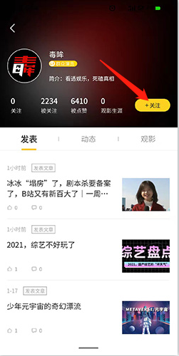 2、进入个人页面,点击“关注”选项即可。
