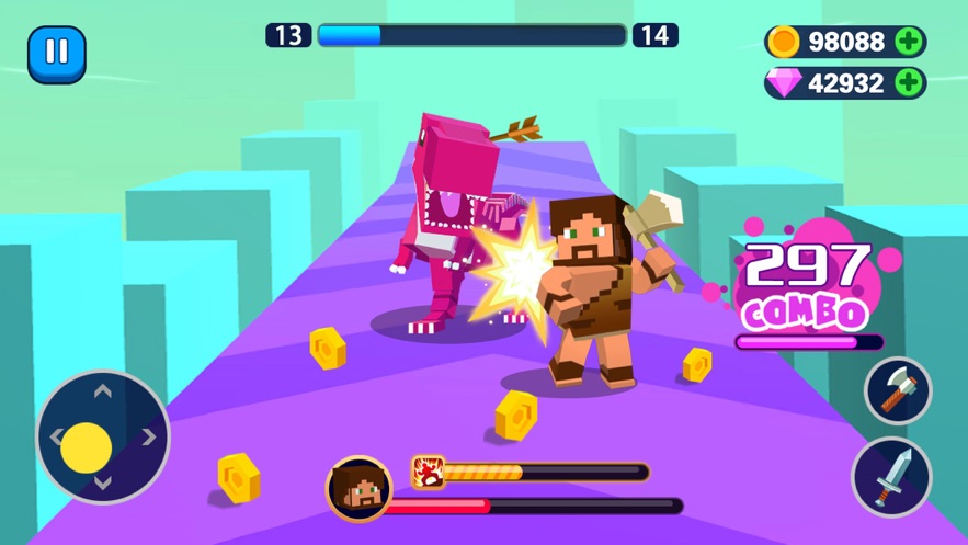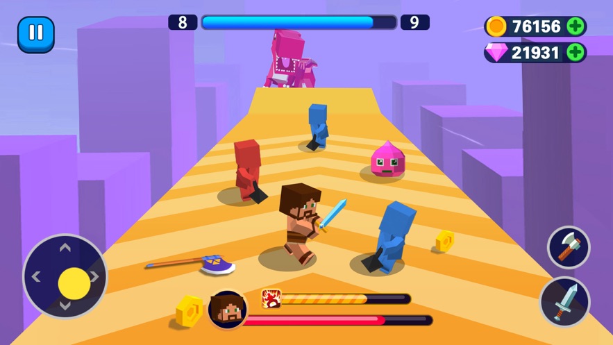 欢乐不已的跑酷战斗对决的手游,随着等级难度的变化,新的挑战敌人的出现,切换手中的宝剑武器对抗无数的敌人对手,刺激不已。