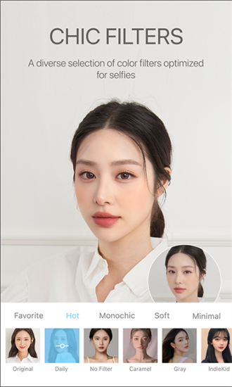 包括不同的化妆类型,不同的滤镜,并自由选择最适合的滤镜效果来实现不同的照片风格。