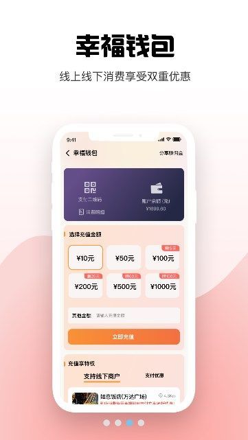 3、提供全新的升级服务,幸福钱包工程,线上线下消费享受双重优惠。