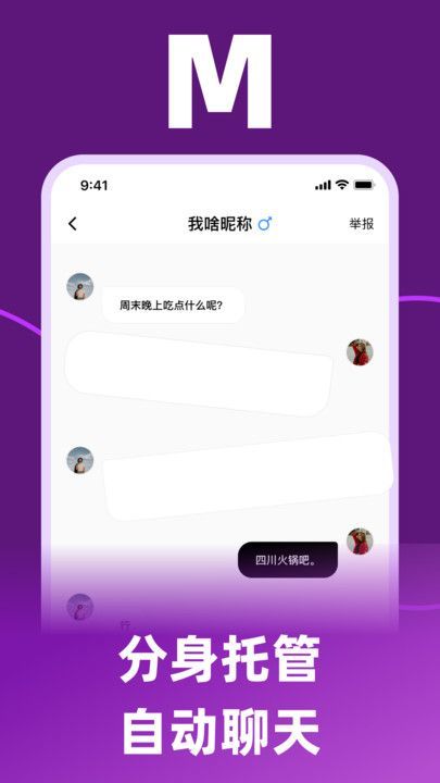 2、M能够替你应答聊天搭讪,避免尬聊减少骚扰,需要在上线时选择那些聊的来的人继续交往。