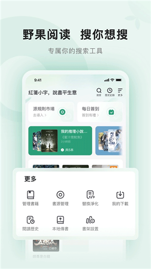 野果阅读换源小说app2024是一款为读者提供高品质原创小说的手机软件,这款软件汇集了众多优秀作家的精彩作品,包括言情、玄幻、都市、历史等多种题材种类。这意味着你可以尽情畅游在不同世界和角色的故事之中。无论你是喜欢甜蜜暖心的爱情故事,还是追求震撼惊险的奇幻冒险,该软件都能满足你的阅读需求。