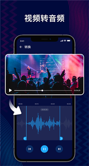 1、音频剪切、串烧、多轨合成、升降调、变速、调节音量、制作伴奏、视频提取音频、朗诵加背景音乐、设置MP3封面作者信息等等热门需求,支持丰富的文件格式。