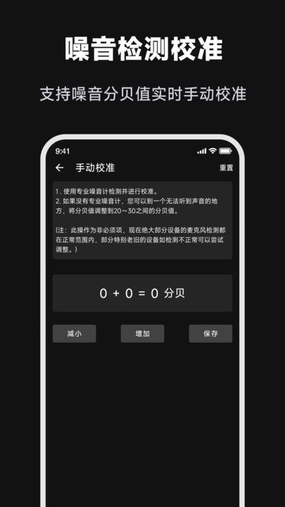 2、调节测试结果,校正后分贝测试结果更加精确,还可以保存相应的设置。