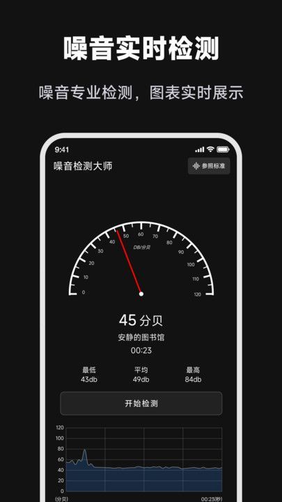 1、实时噪音水平的动态图表,使用户能够直观地观察噪音变化趋势。