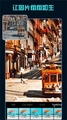 软件中根据多种不同的图片服务帮助用户在精美的方式下打造更好的特效和结果,在app里不同的风格和照片内容给你最佳的滤镜功能,让照片呈现不同的风格。