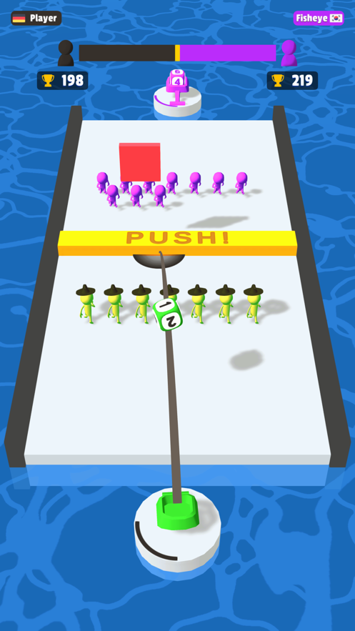 骰子推推推游戏是一款简单有趣的闯关游戏。玩法有点类似与拔河,只不过从拔变成推,玩家通过投掷骰子来召唤英雄,点数越大召唤的英雄越多,那么在比赛的过程中所占的游戏就会越大,玩法非常简单,是一款非常不错的消磨时光的小游戏。