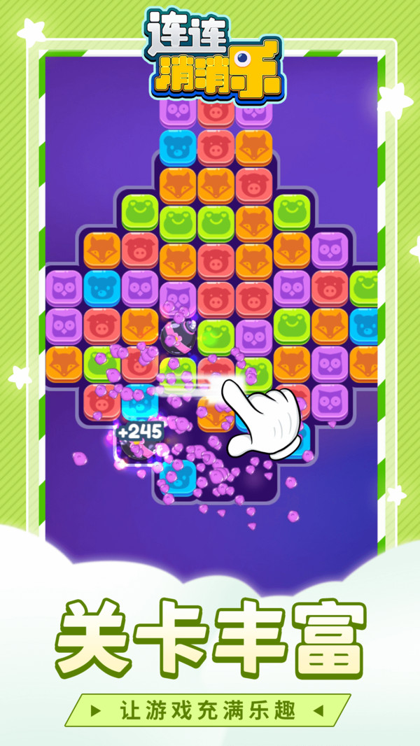 1.关卡数量丰富,简单进行手游挑战,感受经典手游消除挑战