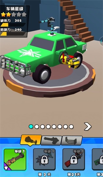 4.游戏者可以在手游中使用汽车加装的武器攻击对手,击败所有对手就没有人和游戏者抢第一了。