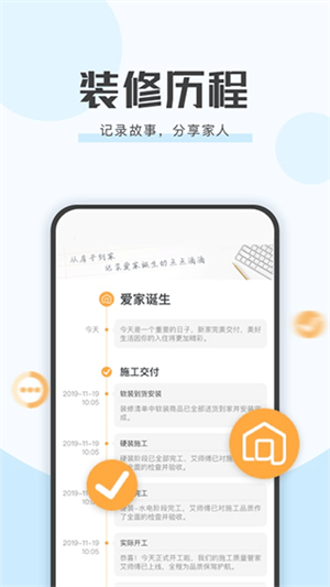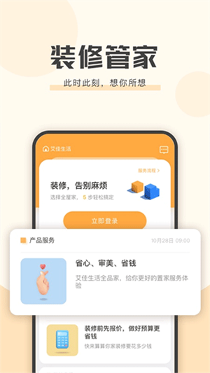 艾管家为您家的装修全程监理,使您在线完成装修预订、签约、交款、交付监督的全流程。装修的每一个阶段进展,都在线呈现给您,直到完成一个完美的家。