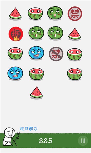3.搭配上超级应景的西瓜元素,每个都拥有非常贱贱的表情等待玩家将其消除。