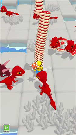 4灵活控制你的小恐龙去击败其他的恐龙,击败恐龙后,会获取大量的肉块,用来换取金币。