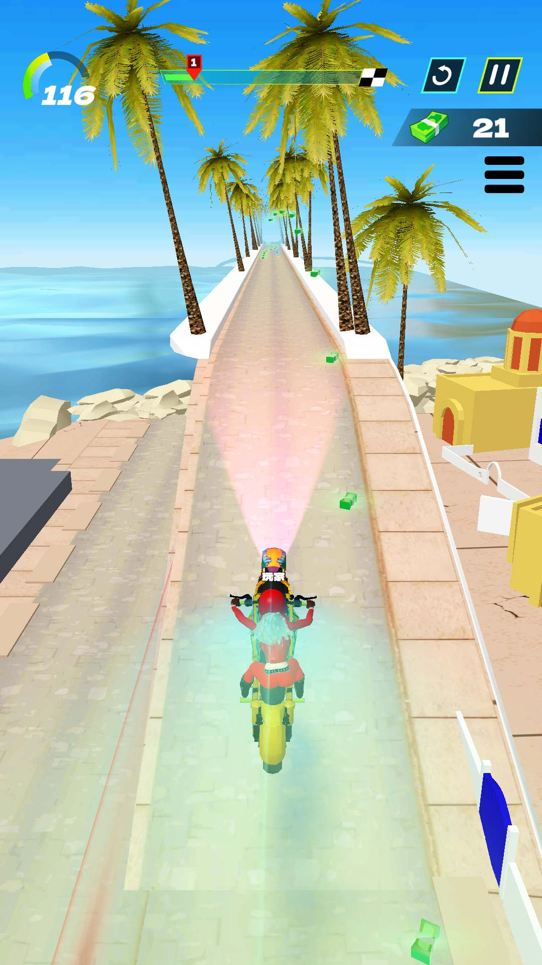 1、地图:大量的摩托车驾驶地图等待玩家选择挑战,驾驶摩托车在各种不同地图当中尽情游玩;
