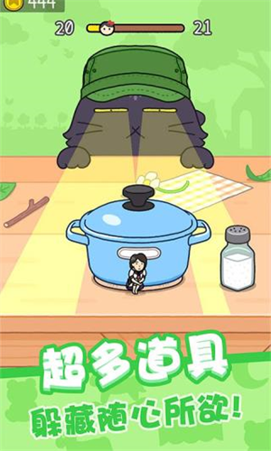1.利用各色各样的道具来帮助自己更好的进行隐藏,也可以在最短的时间内完成更多的目标。