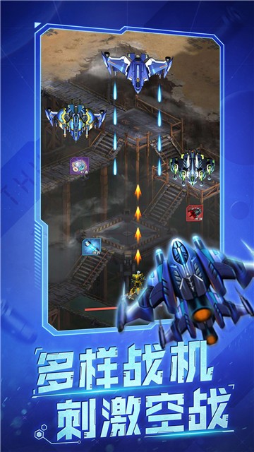 几架性能不同的战机等待游戏者升级开启,享受更好的射击尝试。